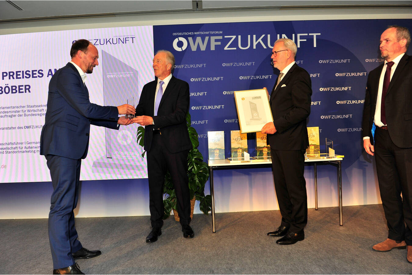 Am 14. Juni 2021 wurde zum zweiten Mal der Wirtschaftspreis VORSPRUNG verliehen. Weimar, Juni 2021: Im Rahmen des diesjährigen Ostdeutschen Wirtschaftsforums wurde am 14. Juni 2021 nun bereits zum zweiten Mal der Preis des OWFZUKUNFT vergeben. Mit diesem Preis werden exzellente Leistungen mittelständischer Unternehmer gewürdigt. Gerade in der aktuellen Corona-Krise, die eine erhebliche Prüfung für nahezu alle ostdeutschen Unternehmen bedeutet, soll mit dem Preis ein Zeichen für Aufbruchstimmung und innovatives Unternehmertum in Ostdeutschland gesetzt werden. Die Jury unter Leitung von Matthias Platzeck, Ministerpräsident Brandenburgs a.D. und ehemaligen Leiter der Kommission „30 Jahre Friedliche Revolution und Deutsche Einheit“, hat aus den insgesamt 36 Nominierungen fünf Preisträger ermittelt. In einem feierlichen Rahmen übergaben Marco Wanderwitz, Beauftragter der Bundesregierung für die neuen Länder, und OWF-Veranstalter Frank Nehring die Preise. Der Wirtschaftspreis ‚VORSPRUNG‘ ging in diesem Jahr, neben 4 weiteren