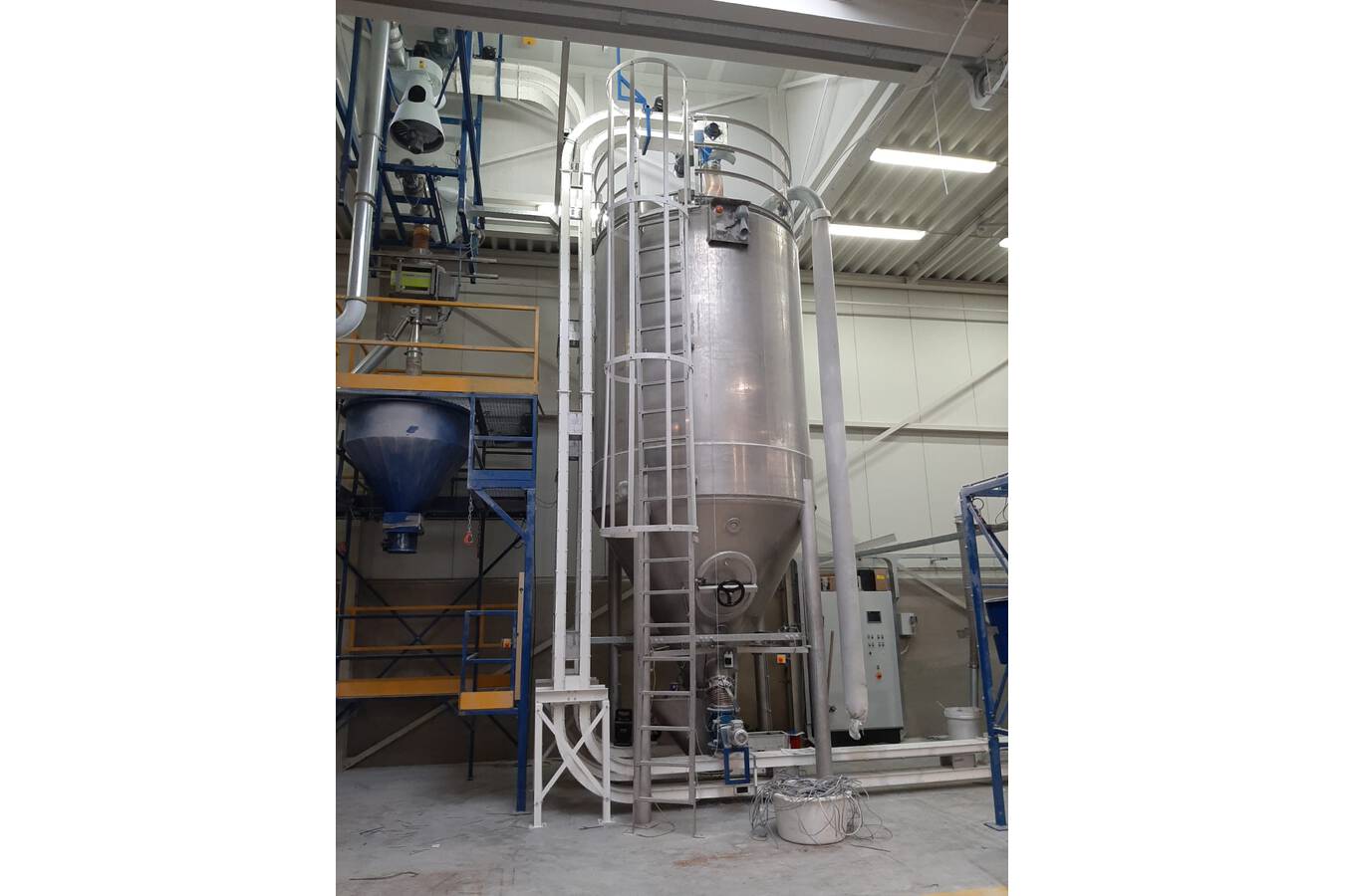 Kurven in einem pneumatischen Fördersystem für Manganpulver nutzten sich alle 3-4 Wochen ab. Dauertests mit dem langsamen Z-Förderer haben gezeigt, dass dies eine praktikable Lösung ist.