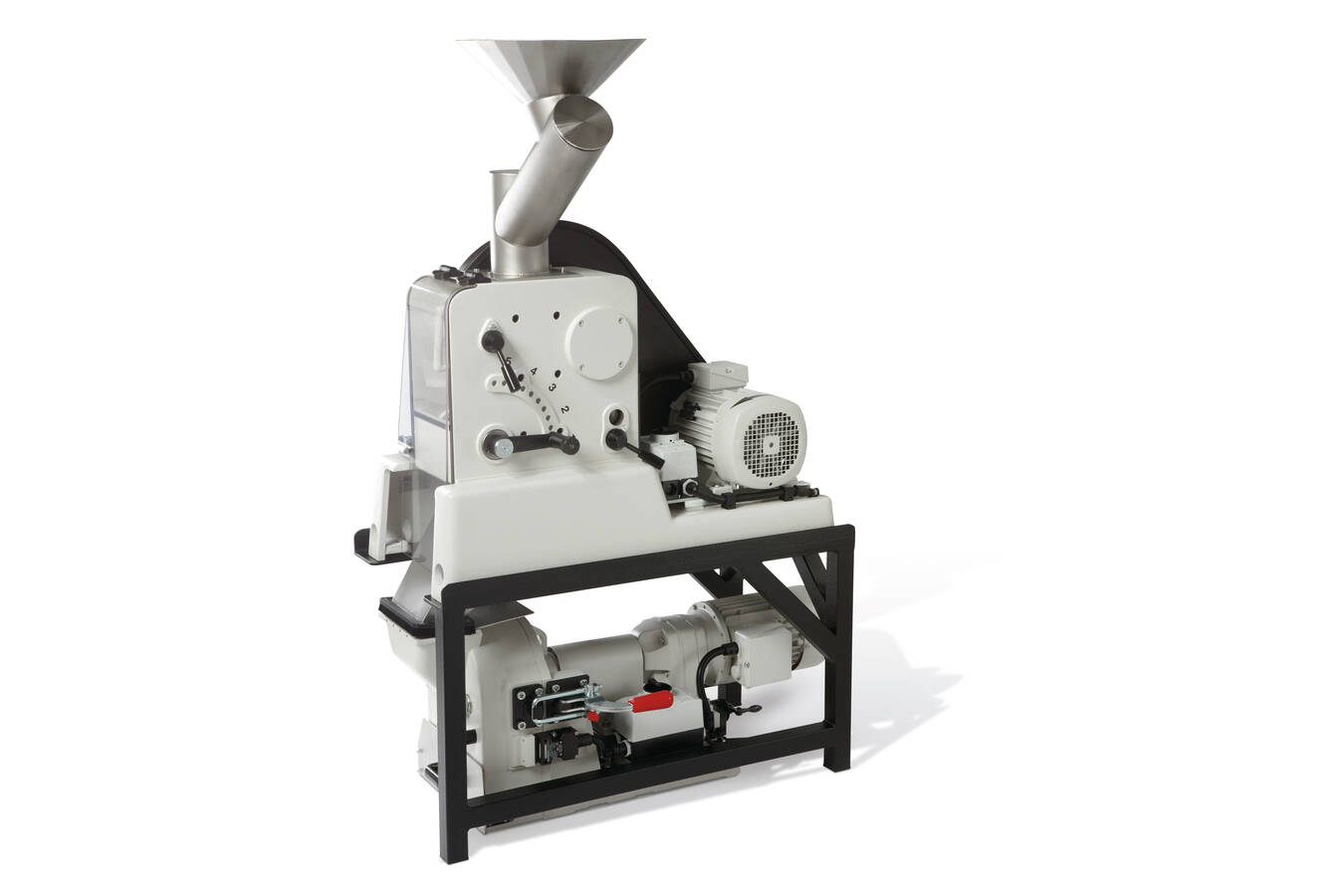 Der Präzisions-Schiebetisch dieser Scheibenmühle sorgt für eine präzise Spalteinstellung auch während der Mahlung mit 0,1 mm Genauigkeit. Die Spaltweitenkontrolle kann ganz bequem beispielsweise mit einer Fühlerlehre von außen durchgeführt werden – für schnelles, genaues Arbeiten und exakt reproduzierbare Mahlergebnisse.