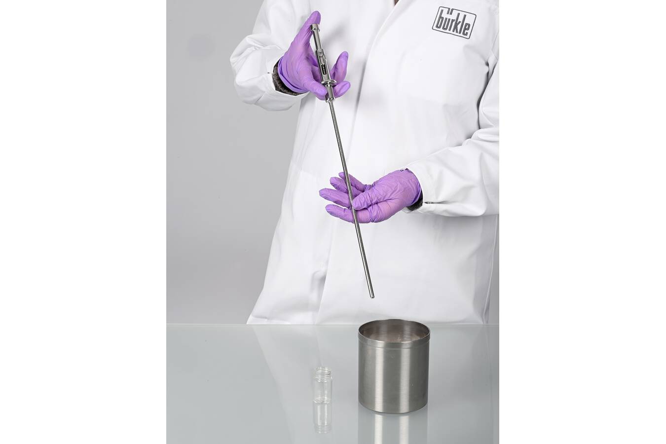 Der Pulver-Probenehmer Mini kommt bei der Probeentnahme von pulverförmigen Produkten aus kleinen Behältern, Säcken, Tonnen oder offenen Gebinden zum Einsatz. Vorrangig im Bereich Pharma, Medizinprodukte und Biotechnologie z. B. bei der Rohstoffprüfung von Ausgangsmaterialien, Wirkstoffen und Hilfsstoffen.