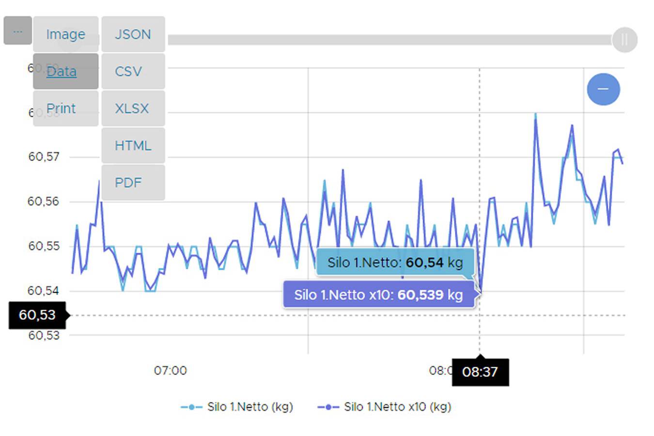 Die Cloud-Lösung bietet auch Zugang zu Ihren eigenen voreingestellten Diagrammen, die nur die für Sie relevanten Informationen anzeigen, so dass Sie bei der Analyse Ihrer Unternehmensleistung Zeit sparen. Die voreingestellten Diagramme können zur weiteren Verwendung in vielen Formaten exportiert werden, darunter pdf oder jpeg.