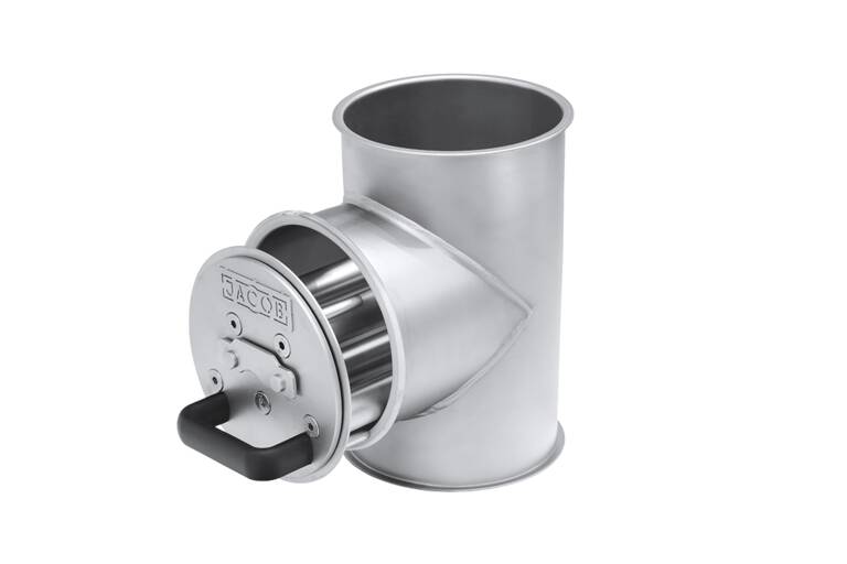Der patentierte Horizontalzyklon von JACOB ist die kompakte Lösung zur Partikelabscheidung und passt in jedes Rohrsystem. Durch seine Bauform lässt er sich einfach in gerade Rohrleitungen integrieren. Im Gegensatz zu einem vertikalen Fliehkraftabscheider ist der Horizontalzyklon äußerst platzsparend und ist die beste Option, wenn ein Zyklon nachgerüstet werden soll. Durch die modulare Bauweise lässt sich der Horizontalzyklon problemlos in ein bestehendes System integrieren.