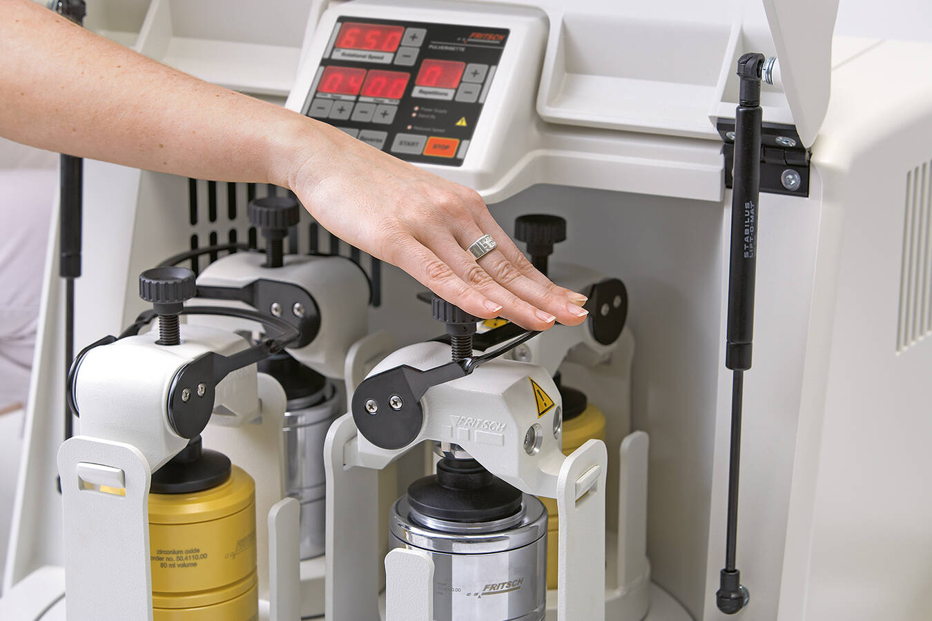 FRITSCH Planeten-Kugelmühlen classic line garantieren eine sichere Verspannung der Mahlbecher, bieten eine besonders leichte, ergonomische Bedienung sowie eine schnelle und leichte Reinigung. Und zeichnen sich durch sichere Reproduzierbarkeit und verlässliche Langlebigkeit auch im Hochleistungs-Dauerbetrieb aus.