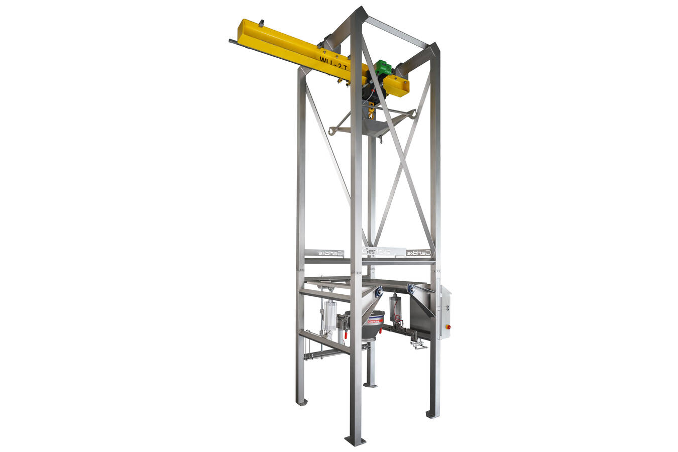 - Das Heben von Big Bags kann nun von der Rückseite oder von der Seite des Entladerahmens aus erfolgen. Dadurch erhöht sich die Sicherheit. Diese Vielseitigkeit ist auch von Vorteil, wenn die Platzverhältnisse eingeschränkt sind. Der Kranbalken kann an jeder beliebigen Seite angebracht werden.