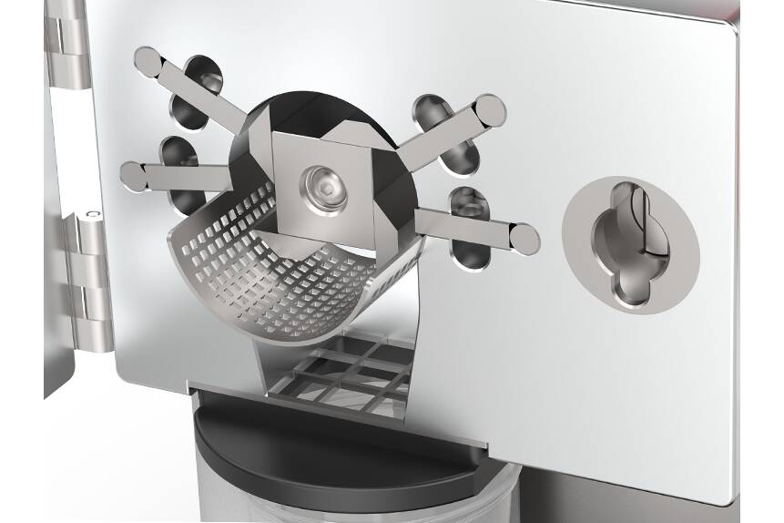 Extrem leistungsstark: Der Rotor mit vier geraden Schneiden und Gegenmessern aus gehärtetem rostfreiem Stahl ermöglichen bis zu 48000 Schneidvorgänge pro Minute.