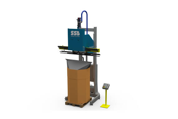 Verschließanlage STV 2200 Die STV 2200  kann Oktabins, Big-Bags oder Kartons mit Inliner verschließen und dabei die Restluft absaugen.