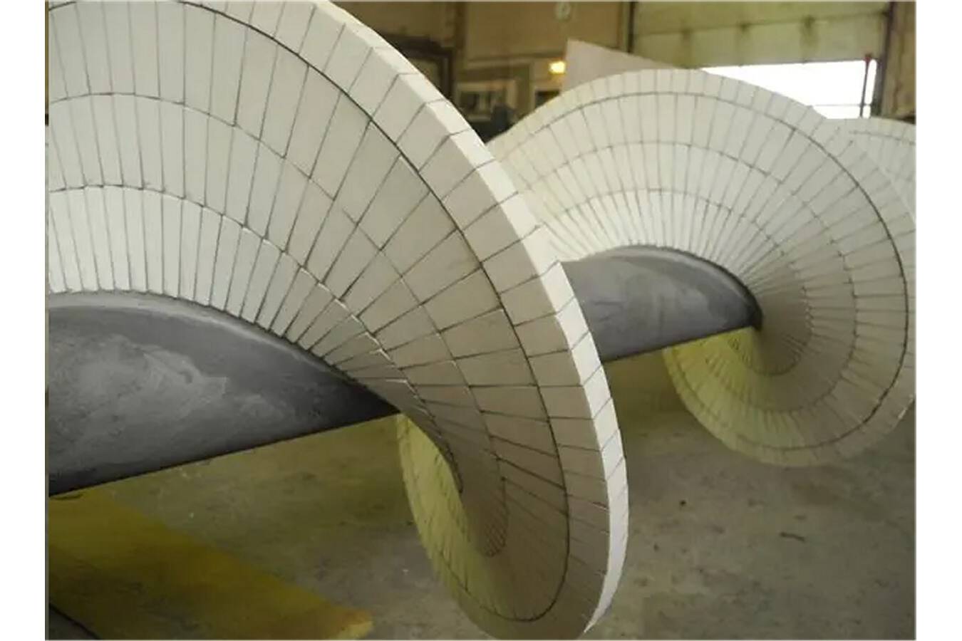 KALOCER war eine bewährte Lösung für den Verschleißschutz. Da es in sehr dünnen Formen hergestellt werden kann, konnte die Förderschnecke mit präzise geformten Teilen für einen Rundum-Kantenschutz ausgekleidet werden.