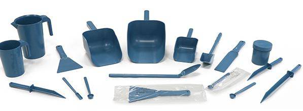 Vermeidung von Reklamationen wegen Fremdkörpern In vielen Betrieben der Schüttgut- und Prozessindustrie werden Metallabscheider bzw -Detektoren eingesetzt, um zu verhindern, dass Fremdkörper ins Produkt und dann zum Kunden gelangen. Dies setzt aber voraus, dass alle Objekte, die auf dem langen Weg des Produktionsprozesses ins Produkt gelangen können auch detektierbar sind. Gerade der Laborbedarf aus Kunststoff stellte hier immer ein potentielles Risiko dar. FOSBA hat deshalb nun eine ganze Reihe von metalldetektierbaren Produkten im Angebot, die das Risiko von Fremdkörpern im Produkt erheblich reduzieren. Die neuen Spateln, Schaufeln, Trichter, Krüge, Flaschen und Dosen sind nicht nur metalldetektierbar, sondern auch dank der blauen Farbgebung hervorragend zu sehen.
