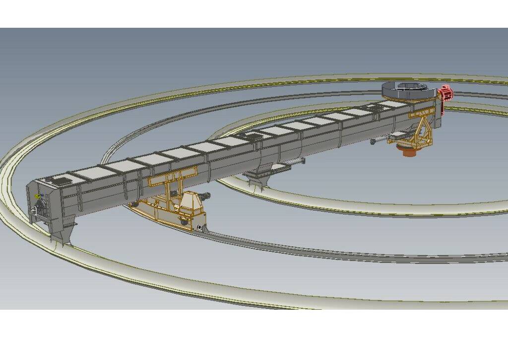 Früher wurde das Silo mit einem mobilen Förderband befüllt, das jedoch nie 100 % sauber und oft störanfällig ist. Aus diesem Grund hat Jansen&Heuning eine rotierende Schneckenförderer entwickelt. Diese Schraube ruht in der Mitte auf einem Drehkranz und in der Mitte auf einem Radsatz, der für die Bewegung der Maschine sorgt.