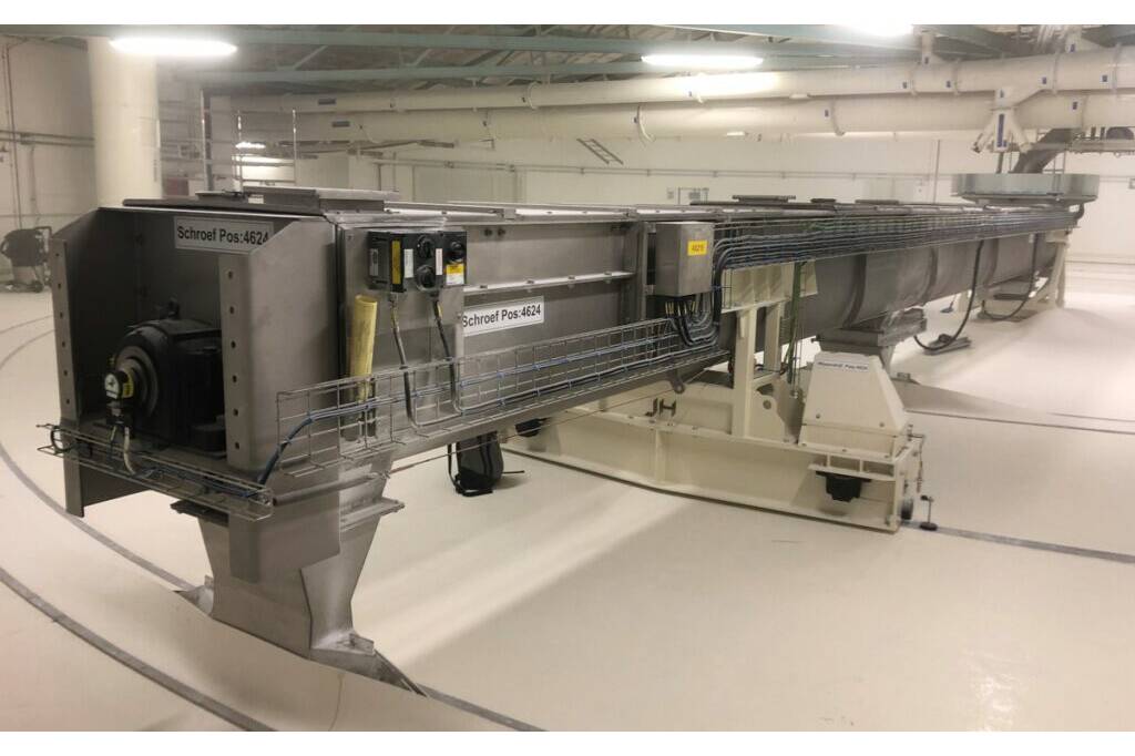 Die Schneckenförderer hat einen Durchmesser von 800 mm und ist komplett aus Edelstahl 304 gefertigt. Die Füllkapazität beträgt etwa 150 Tonnen/Stunde. Mit einer Länge von 13 Metern ist dies eine einzigartige Schneckenförderer .