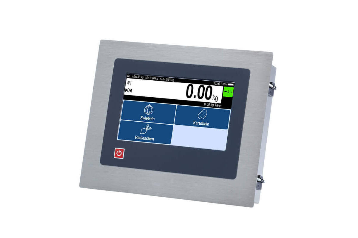 - Leuchtstarkes und kontrastreiches 7“ TFT-Touch-Farbdisplay mit weitem Betrachtungs-Winkel, großer Gewichtsanzeige und 4 bis 8 Eingabe-Zeilen