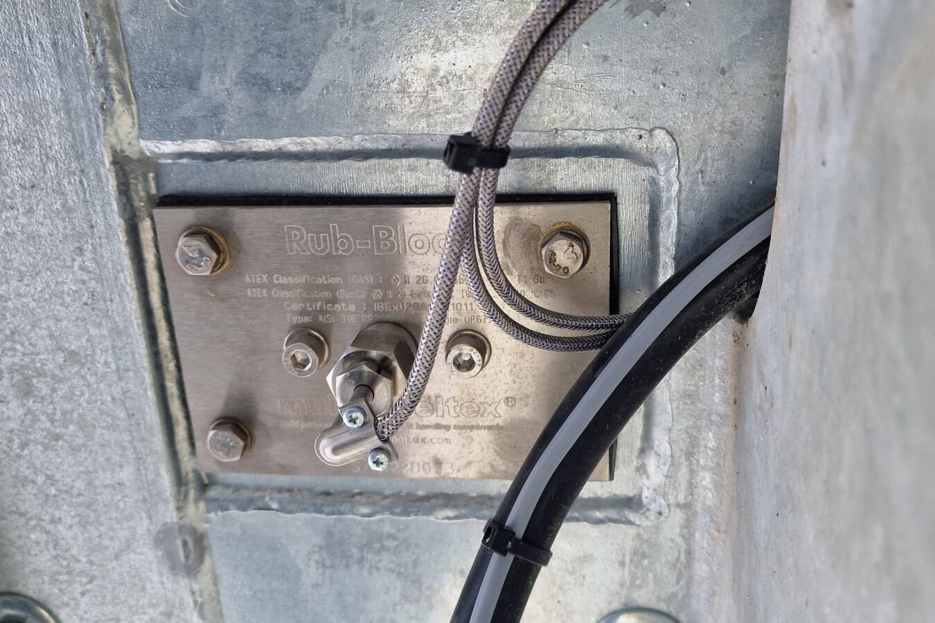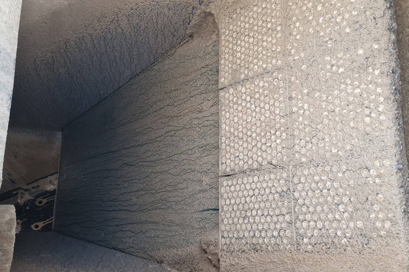 Als die ersten Anzeichen für eine nachlassende Zuverlässigkeit des Elevators auftraten, wurde Muller Beltex gebeten, die Anlage wieder in Gang zu bringen. Nach einer umfassenden Inspektion stellten wir fest, dass das Gehäuse des Becherelevators an mehreren Stellen begann zu rosten . Der Grund dafür war, dass das beförderte Produkt einen hohen Salzgehalt aufwies und das Auslaufblech stark abgenutzt war. Auch die Umlenktrommel hatte das Ende ihrer Lebensdauer erreicht.