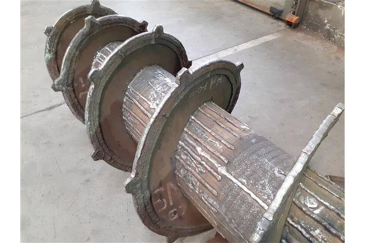 KALMETALL Hartauftragsschweißung ist extrem schlag- und abriebfest und wird zur Herstellung langlebiger Förderschnecken verwendet. Kalenborn stellt aus dem verschleißfesten Werkstoff die Schneckengänge und die Welle her.
