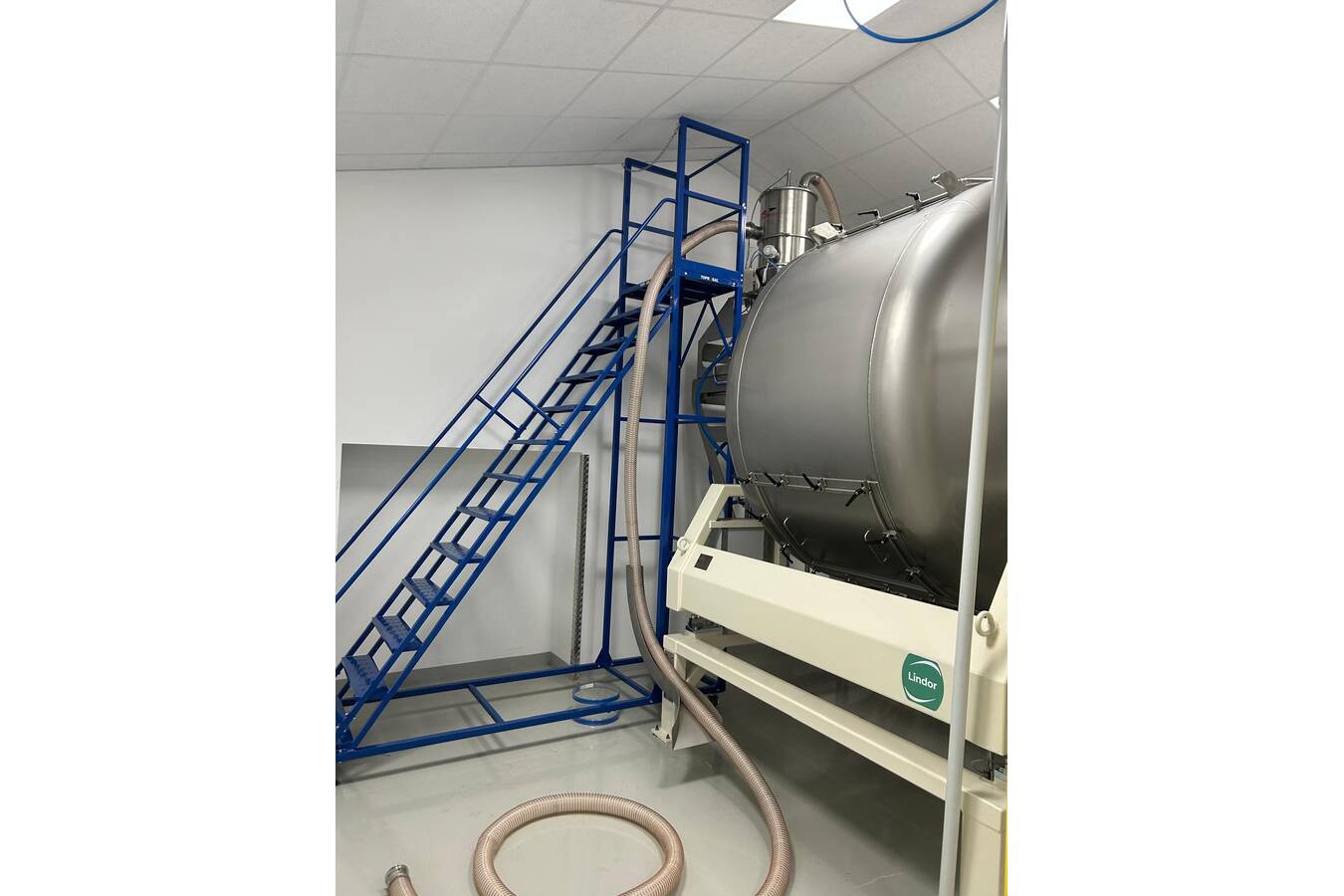 Bei der Konzeption der Anlage haben die Lindor Ingenieure darauf geachtet, dass das Produkt perfekt durch das Vakuumtransportsystem fließt – wie Wasser, das ungehindert fließt. Eine Luftpumpe, die den Vakuumeffekt erzeugt und das Produkt mit Luft anreichert, sorgt für diesen perfekten Fluss.