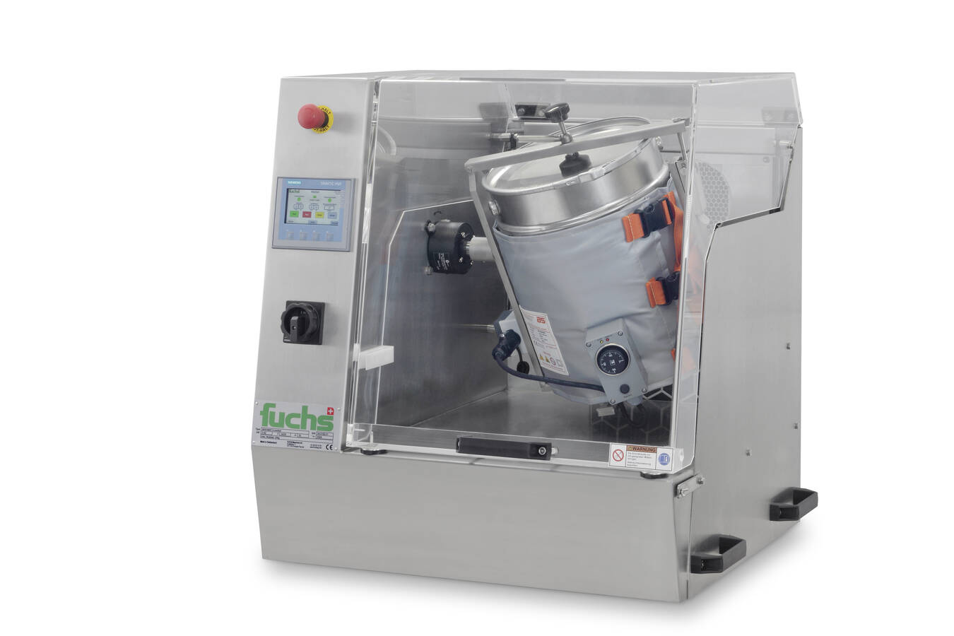 Die Absicherung des Labormischers erfolgt nach der EG-Maschinenrichtlinien 2006/42/EG und wird mit einer Unfallschutzvorrichtung ausgeliefert, bestehend aus einer Acrylglashaube, welche mit einem berührungslosen Endschalter versehen ist. Dieser erlaubt das Starten des Mischvorgangs nur bei komplett geschlossener Haube. Bei der zweiseitigen Ausführung müssen beide Hauben geschlossen sein.
