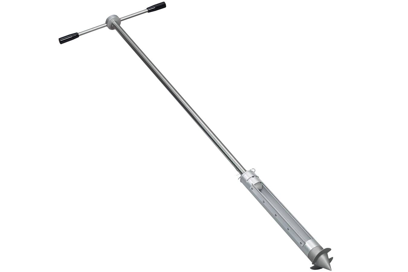 Der SiloBohrer entnimmt eine Allschichtprobe durch mehrere Schichten des Schüttgutes, so dass die Qualität, Zusammensetzung oder andere relevante Eigenschaften des gesamten gelagerten Materials analysiert werden können. Der Probenehmer passt durch Öffnungen ab einem Durchmesser von 90 mm und ist somit vielseitig einsetzbar. Ein spezieller Mechanismus ermöglicht das einfache Öffnen und Schließen der Entnahmekammer durch Drehen des robusten T-Griffs. Das federnd gelagerte Innenrohr minimiert die Gefahr des Verklemmens von groben Körnern. Die Bohrschaufeln und eine Schürfkante ermöglichen auch die Probenahme von zusammenbackenden und nicht fließfähigen Schüttgütern.