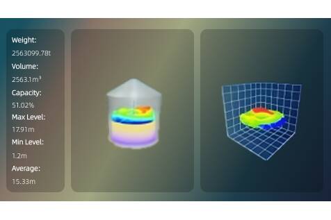 3. KI-gestützte 3D-Volumenmodellierung; Die massiven Punktwolkendaten werden über die proprietären KI-Algorithmen von RETTAR verarbeitet, um ein hochauflösendes 3D-Modell der Getreideoberfläche zu erstellen. Dies erreicht eine Volumengenauigkeit von bis zu ±0,5% FS. Das System lässt sich über 4-20mA, RS485 oder Ethernet nahtlos in ERP und WMS integrieren und ermöglicht vollautomatische Bestandsprotokolle.