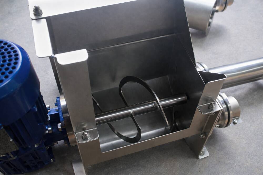 Um einen stetigen Fluss zu fördern, wurde ein gegenläufiges Rührwerk im Einlauf eingebaut, das das Material konditioniert und Brückenbildung reduziert. Glatte Innenflächen minimieren Materialablagerungen.
