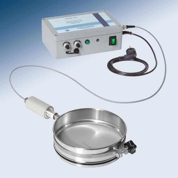 Rund um die Partikelanalyse bietet HAVER & BOECKER ein umfangreiches Programm an Zubehör und Zusatzausstattungen für eine präzise, komfortable Arbeit im Labor. Das HAVER UFA wurde speziell konzipiert für das Absieben von Pulvern von siebkritischen Materialen im Bereich « 300 µm. Die Spannringe werden um das anzuregende Analysensieb gelegt (für Standard-Siebdurchmesser von 76,2 mm bis 400 mm), um somit eine Übertragung des Ultraschalls auf die Siebgewebe zu ermöglichen. Im Vergleich zur klassischen dreidimensionalen Absiebung wird in Kombination von Laborsiebmaschine und zusätzlicher Ultraschallabsiebung bei vielen ein deutlich verbesserter Durchgang erzielt. In einigen Fällen ist so überhaupt erst eine Absiebung möglich, die vorher nur durch andere Verfahren oder gar nicht durchführbar war. Die Absiebungszeit verkürzt sich bei den meisten Materialen, da durch die Ultraschallanregung der Reibungswert zwischen Gewebe und Partikel reduziert wird.