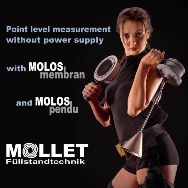 Der Wunsch vieler Kunden Energie einzusparen wird nicht nur von den innovativsten Sensoren sondern auch von Füllstandmessgeräten erfüllt, die eine zuverlässige und preiswerte Füllstandüberwachung ohne elektrische Energie ermöglichen. Die Messgeräte der MOLOSmembran und MOLOSpendu Baureihe der MOLLET Füllstandtechnik entsprechen genau dieser Anforderung und werden von zufriedenen Kunden weltweit in den Bereichen Lagern, Transportieren und Verarbeiten von Schüttgütern eingesetzt.