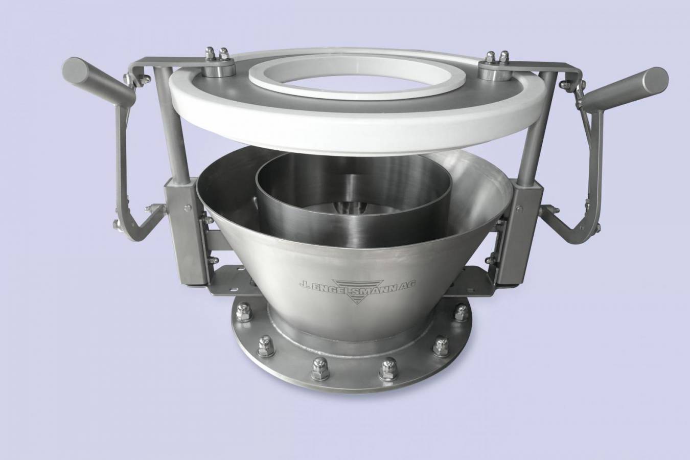 Für Anwendungsbereiche in denen hohe Hygieneanforderungen gelten, empfiehlt Engelsmann daher den Einsatz des neu entwickelten Entleertrichters in Hygiene Ausführung. Der Innenbereich des Trichters ist frei von Toträumen und verlierbaren Teilen, sodass das zu entleerende Produkt weder durch festsitzende Produktreste noch durch sich lösende Bauteile wie Schrauben oder Muttern kontaminiert werden kann. Dank der totraumfreien Bauweise und glatten Oberflächen kann der Trichter einfach und rückstandfrei gereinigt werden. Die Zugänglichkeit aller Teile z.B. zu Reinigungszwecken ist besonders komfortabel, da der Trichter mit wenigen Handgriffen komplett demontiert werden kann. Dadurch können Betreiber die Einzelteile bei Bedarf gründlich desinfizieren und wieder zusammensetzen.