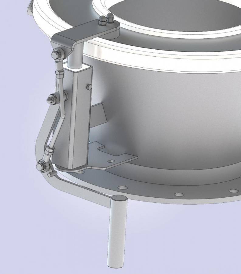 Auch die Bedienung des Trichters ist denkbar einfach: Um den zu entleerenden Big Bag anzuschließen muss lediglich ein Handhebel betätigt werden, der sich dank Gasdruckfedern ohne Kraftaufwand öffnen lässt. Anschließend kann der Big Bag Auslauf mit dem Produktführungsrohr im Inneren des Trichters verbunden, der Big Bag geöffnet und das Produkt kontrolliert entleert werden. Die dabei verdrängte, oftmals staubhaltige Luft entweicht über einen Zwischenraum zwischen Trichter und Führungsrohr nach oben, wo sie über einen Aspirationsstutzen abgesaugt werden kann. Somit können auch staubende Produkte entleert werden ohne dass die Produktionsumgebung oder das Bedienpersonal einer Staubbelastung ausgesetzt werden.