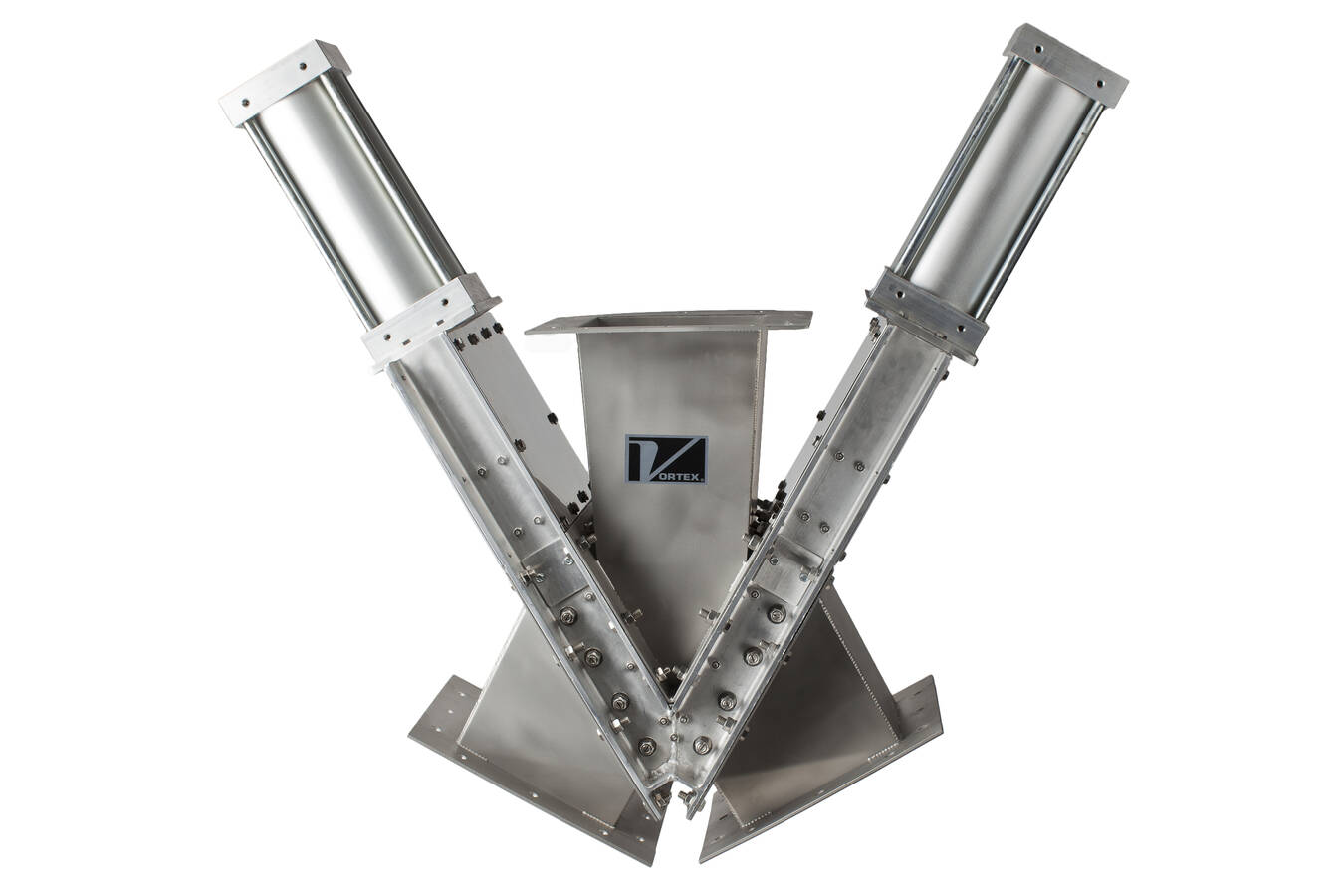 Für die Produktverteilung auf die unterschiedlichen Förderwege konnte Vortex dem Endkunden das Modell Gravity Vee der Titan Serie anbieten. Durch die spezielle Auslegung mit einem Doppelzylinderantrieb, bei dem die pneumatischen Zylinder sich seitlich an der Weiche befinden, konnte die gesamte Einbauhöhe reduziert und somit Platz gespart werden.