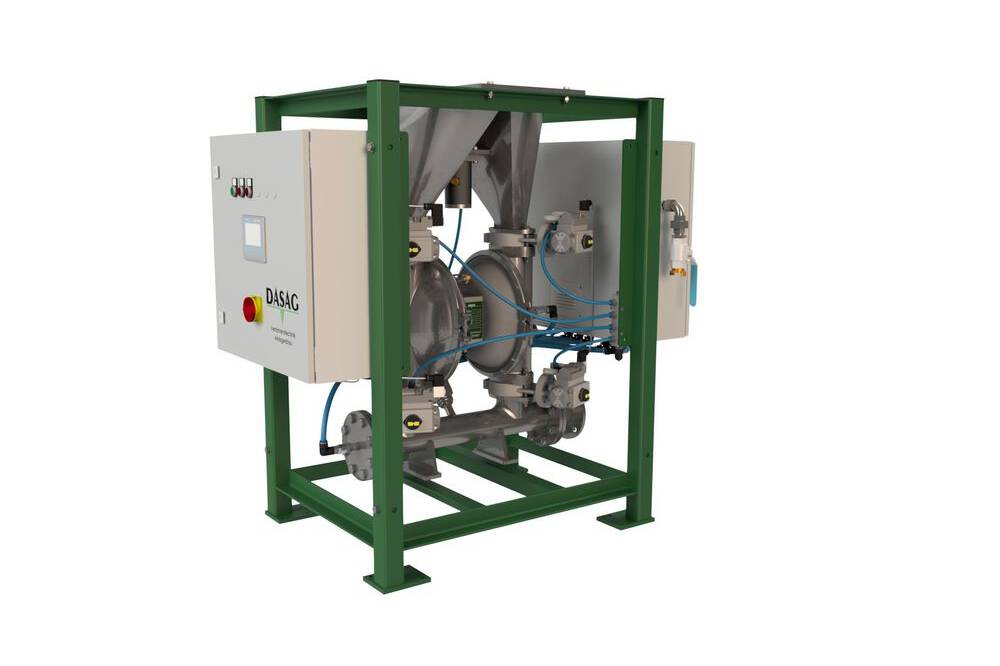 Die DASAG-Pulverpumpe ist eine spezielle Entwicklung zur Förderung von Schüttgütern, basierend auf dem Prinzip einer Doppelmembranpumpe. Ihre technischen und ökonomischen Pluspunkte, im Vergleich zu herkömmlichen pneumatischen Fördersystemen, stellt sie seit ihrer Markteinführung vor mittlerweile über 20 Jahren, bei namhaften Unternehmen der schüttgutverarbeitenden Industrie, unter Beweis.
