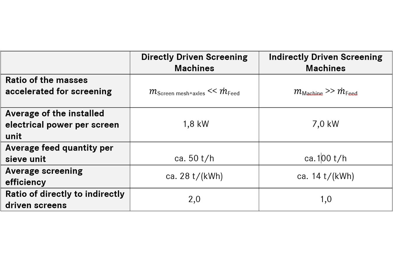 Vereinfacht kann angenommen werden, dass eine direkt angeregte Siebmaschine nur 50 % der Energiekosten einer indirekt (konventionell) angetriebenen Siebmaschine erzeugt.
